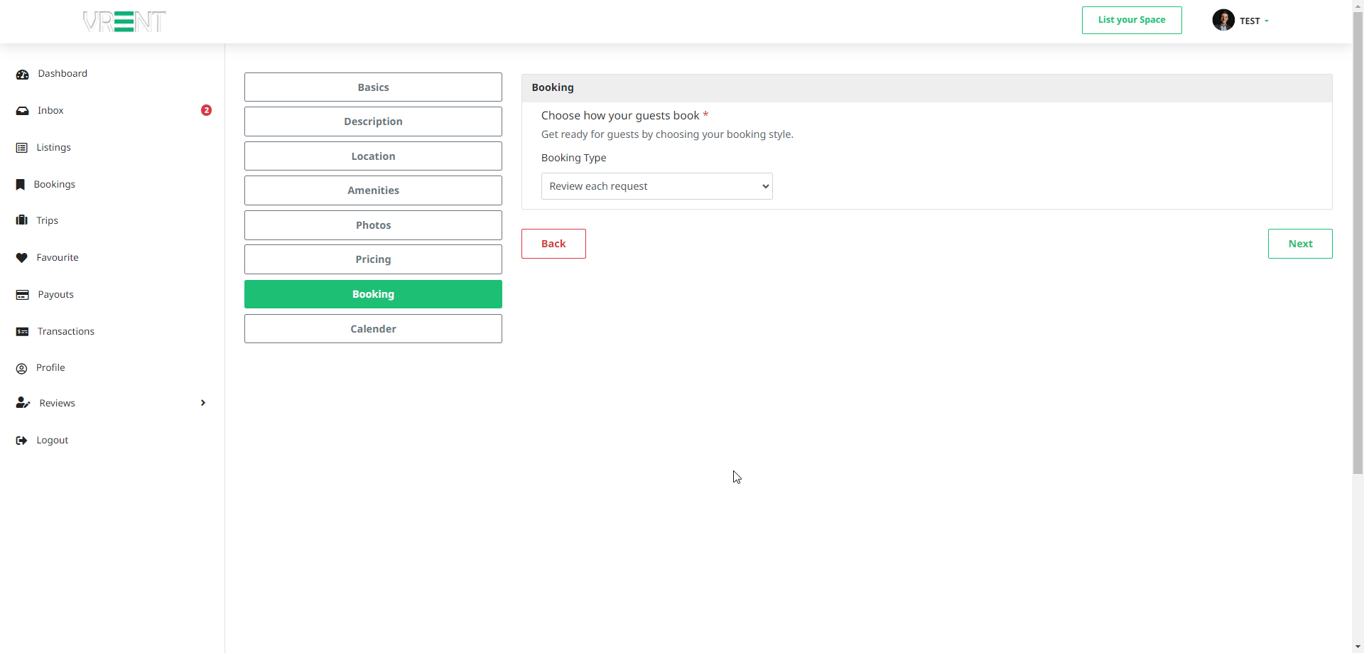 - After a host lists a property, the admin will be notified if approval is required.