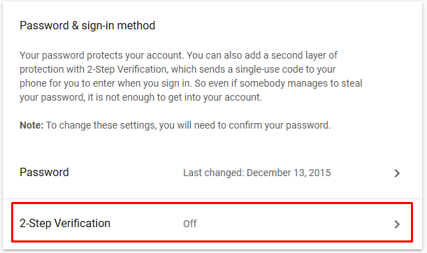 3) Click to turn on 2-Step Verification and follow instructions given.