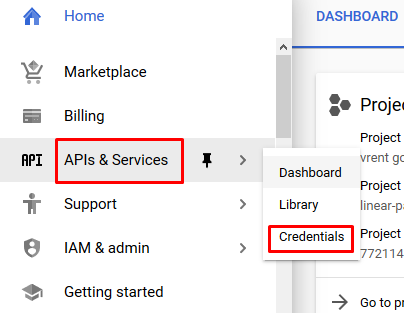 1) Go to Navigation menu -> APIs & Services -> Credentials