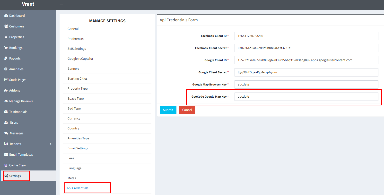 By completing these steps, the Google Map feature in the vRent application should function properly.