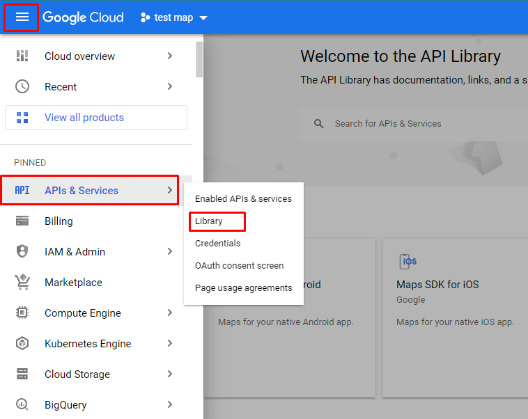 1) Go to Navigation menu -> APIs & Services -> Library
