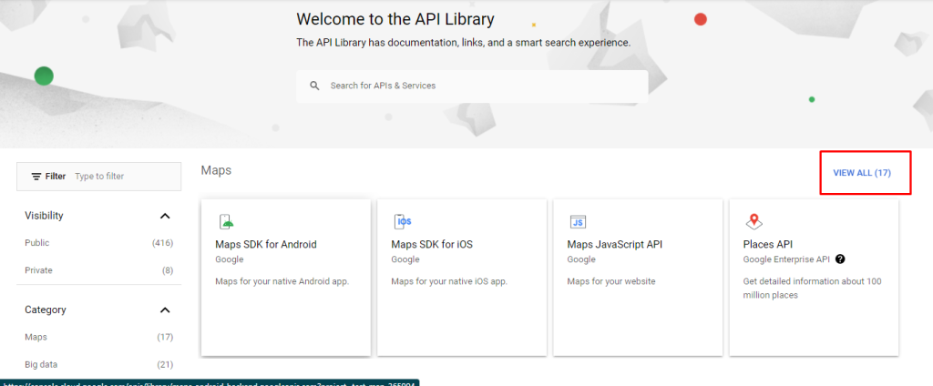 To enable Map view in the site, have to enable 4 APIs from Cloud Console Select your Project first then,