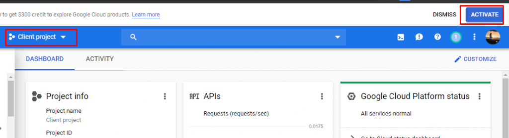 2) Select your project & activate it.