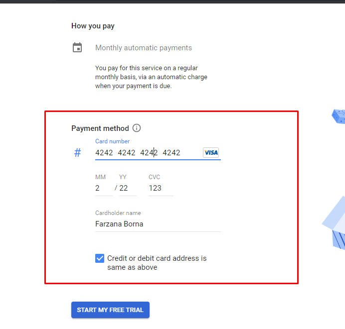 3) For activation put your billing details here.