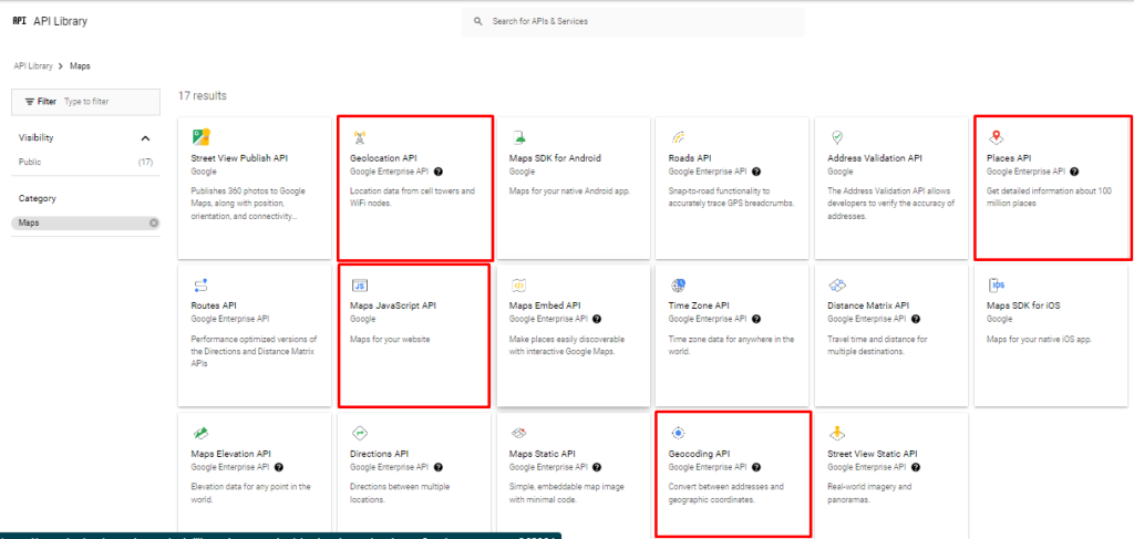 - Geocoding API (Convert addresses into geographic coordinates).