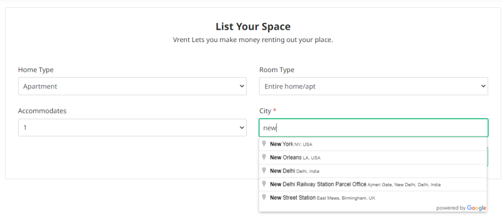 - Enter the city where the listing space is located,