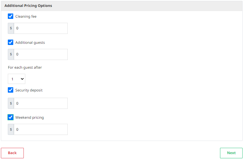 Host also can set some additional prices like Cleaning fee, Additional guest fee, Security deposit, Weekend pricing.