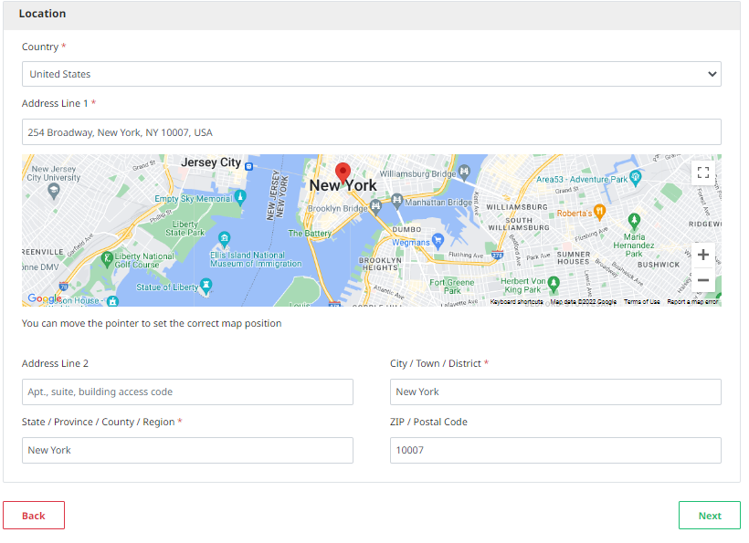 When hosts add the country or location name to their property listing, Google Maps automatically places a pointer on the map at that location. Hosts can also manually adjust the pointer by moving it to the desired location on the map to ensure the correct map position is set for the listing.