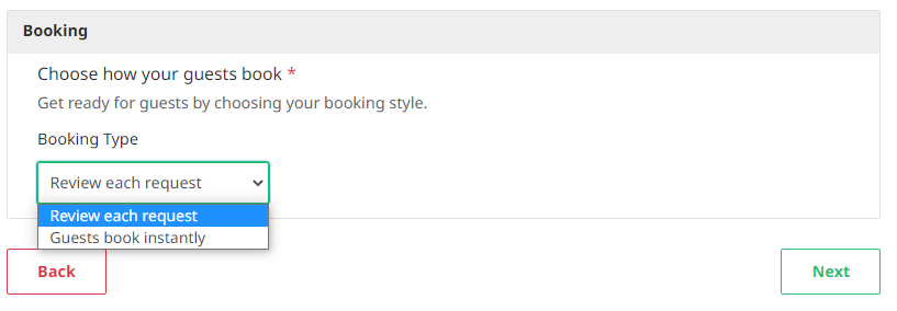 Host can set booking type as Request booking & Instant booking.