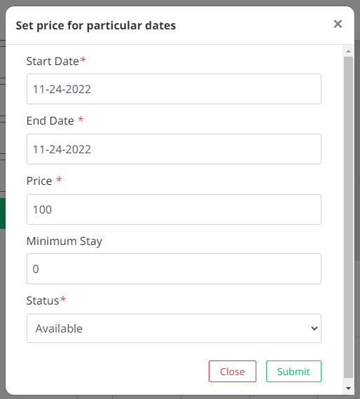 - Select the dates you want to set price.
