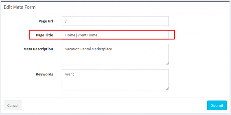 In our application, the functionality to add new meta tags is not available; however, you can edit existing ones. To do so, navigate to Admin Panel > Settings > Metas. Here, you'll find a list of all the meta tags present in the application. Click on Edit next to the meta tag you wish to modify, and you'll be able to update its information.