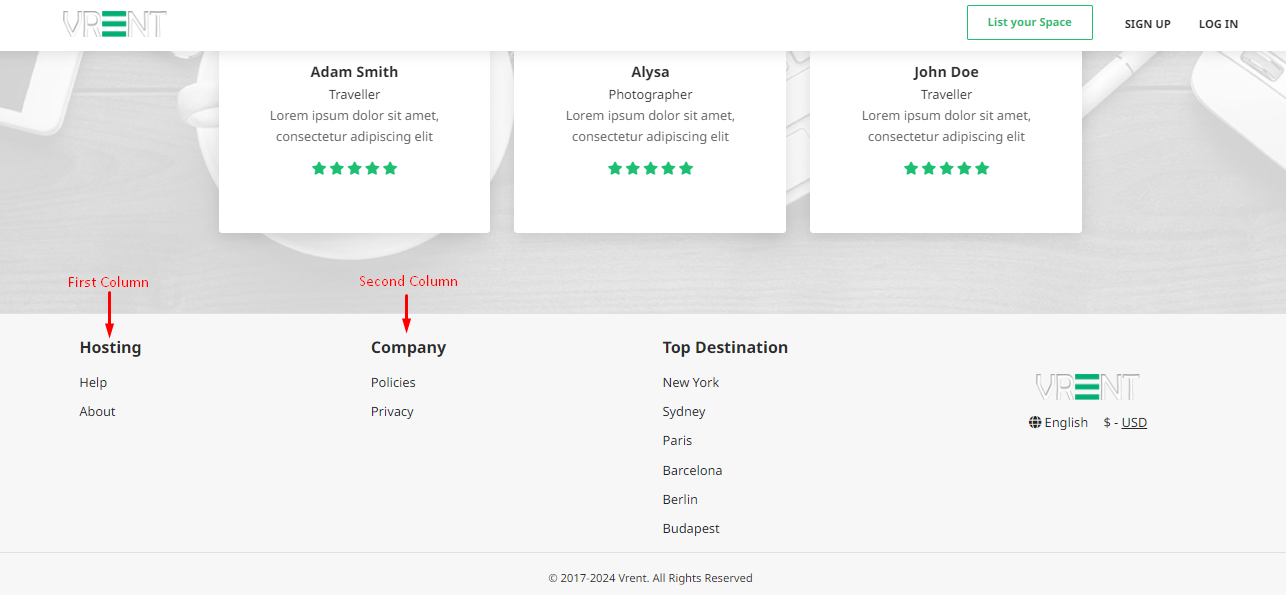 In this Static Page adding Form you can select First column or second Column. with that the Static page will be place according to column in the footer.