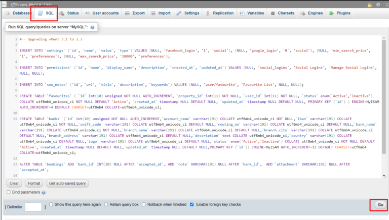 5) Click on the 'Go' button to execute the SQL queries and continue with the database update process.