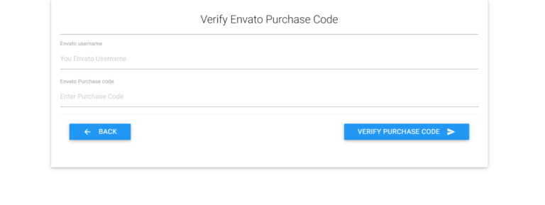 Please insert your Envato username and Product purchase code and click on Verify purchase code button. If the data you inserted are valid then you will be redirected to the home page after a successful verification.
