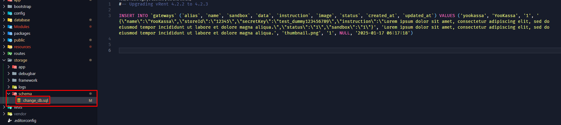 1) Open or download the SQL file from the location provided: (storage/schema/db_changelog.sql)